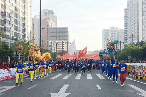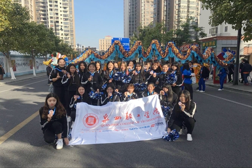 当天上午,由我院舞龙队、拉拉队及七大系部师生组成的运动员方阵格外引人注目,在明亮的校旗与鲜艳的横幅下,身着蓝色运动服的参赛者向着起跑点徐徐前行……