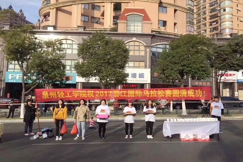 我院推行“1123”工程建设,大力助力晋江国际马拉松赛。据悉,我院在沿途设置了7个能量补给点,为运动员提供了水果和水。其中参与比赛的运动员300余名,志愿者400余名,工作人员200名。学院倡导全民健身,参加此次比赛,不仅使同学们体会到了“马拉松”这种坚持不懈,顽强拼搏的精神,并且促进了师生之间的深厚情感。