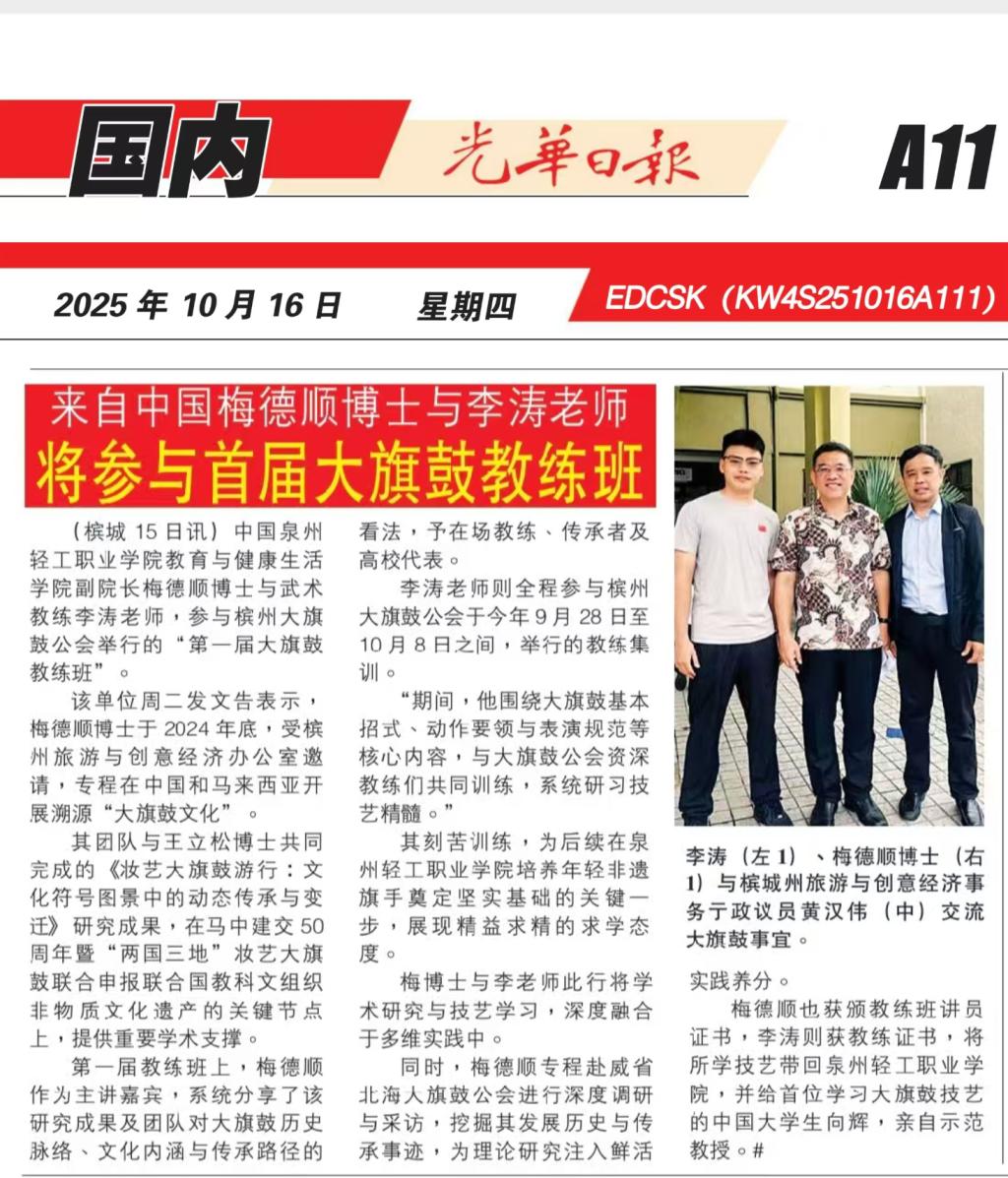下一页:《星洲日报》中教练来槟学大旗鼓回泉州轻工学院传授技艺