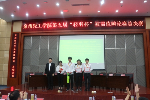 4月25日晚19时许,第五届 “轻羽杯”大学生被需值辩论总决赛在学术报告厅拉开帷幕,我院特邀晋江电视台主持人肖艳南、晋江旅游形象大使周盈、石狮电台主持人川川担任总决赛评委,学院执行董事王树生博士,党委副书记黄建嘉,副院长王勇、何世伟也担任了此次评委。