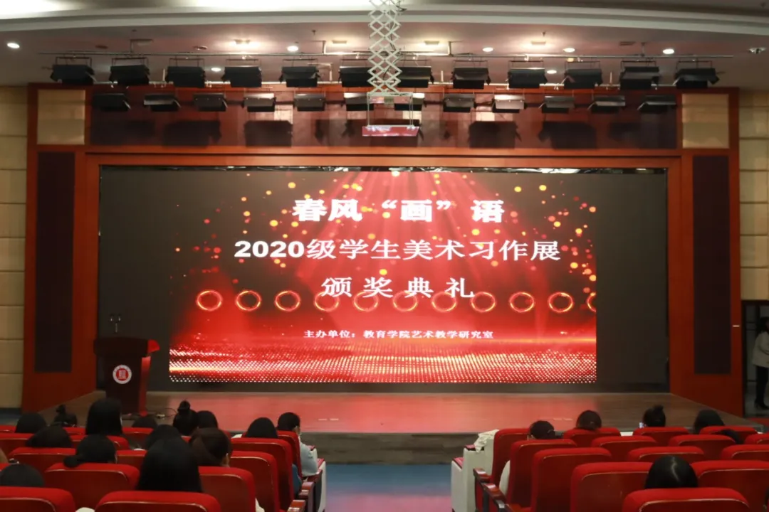美术作品是某一个学习阶段美术教学成果的一次检阅,也是学生学期中学习水平的重要体现。作品展览,可以让学生在观摩中互相学习,同时也为校园艺术文化建设起到了很好的作用。2021年1月12日晚上七点,教育学院在智慧书馆四楼学术报告厅举行春风“画”语2020级学生美术习作展颁奖典礼。