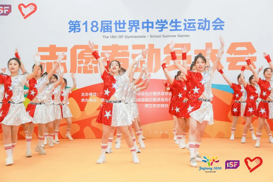 2020年12月5日,第十八届世界中学生运动会志愿者动员大会在晋江市第二体育中心隆重召开。我校教育学院组建的团体健美操作为活动开场,现场表演为世中运志愿者动员大会助力喝彩!现场气氛热烈、激情四射。