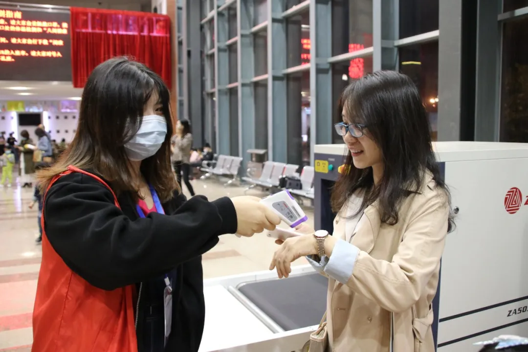 疫情防控期间志愿者为家长和孩子提供安全保障。